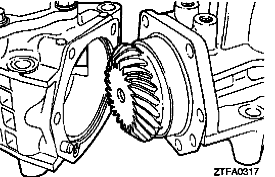 1. If correct tooth contact cannot be obtained even by change of the driven bevel gear mount adjusting spacer, increase or decrease the drive bevel gear preload adjusting spacer and the drive bevel gear mount adjusting spacer as described below and then adjust tooth contact again.