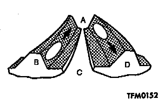 2. If the tooth contact pattern cannot be adjusted close to the standard pattern by above adjustment, replace the drive bevel gear and driven bevel gear as a set and readjust the tooth contact.