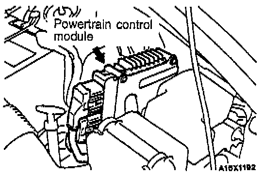 The powertrain control module is located under the hood, near the battery.