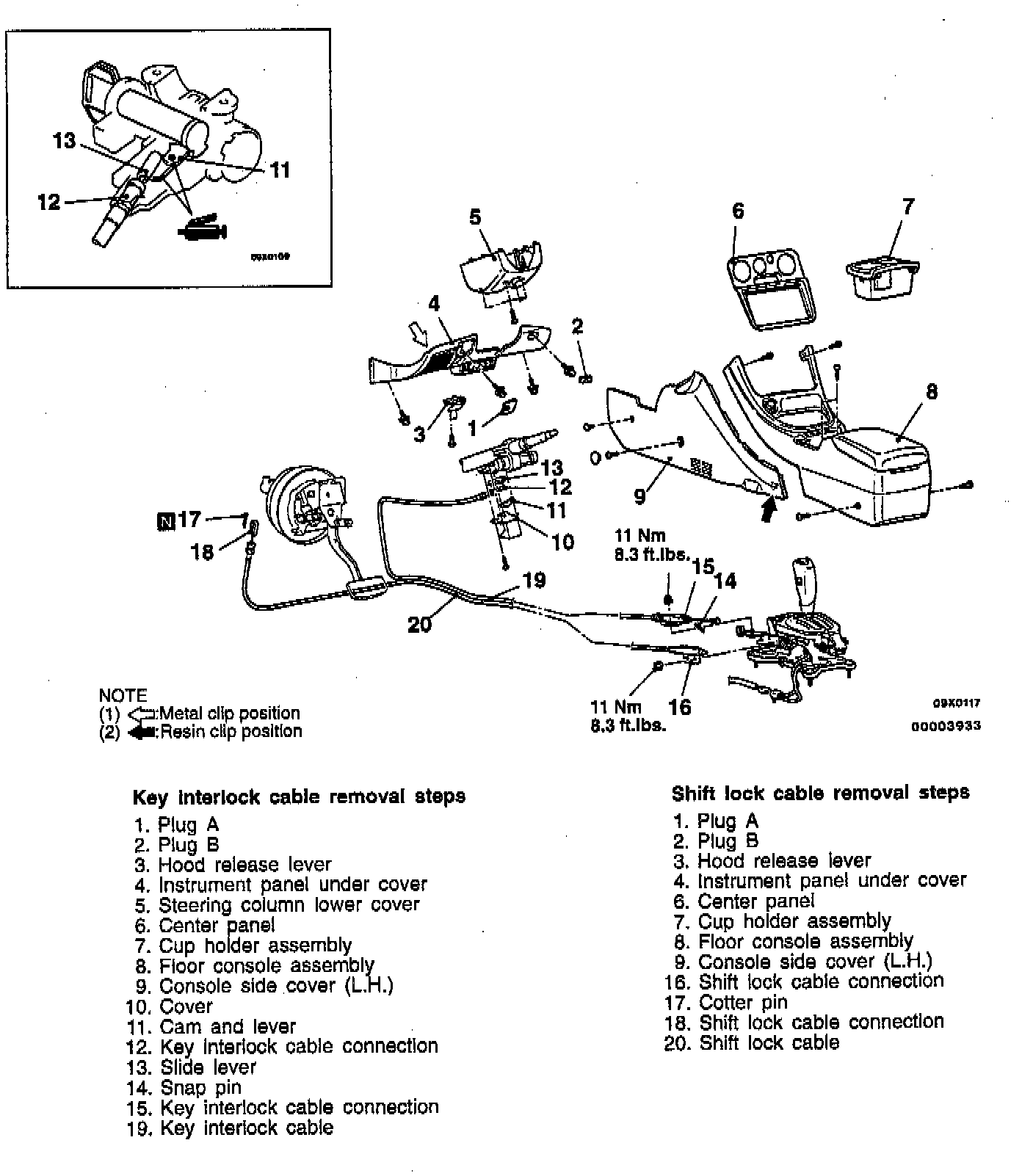 A. Shift lock cable/ key interlock cable installation. (19 & 20)