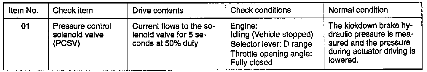 Actuator Test Reference Table