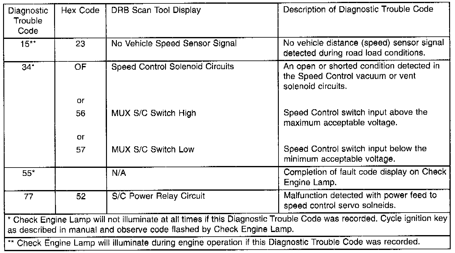 Speed Control Diagnostic Trouble Codes: