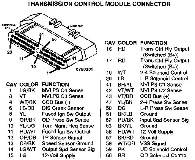 Transmission Control Module Connector: