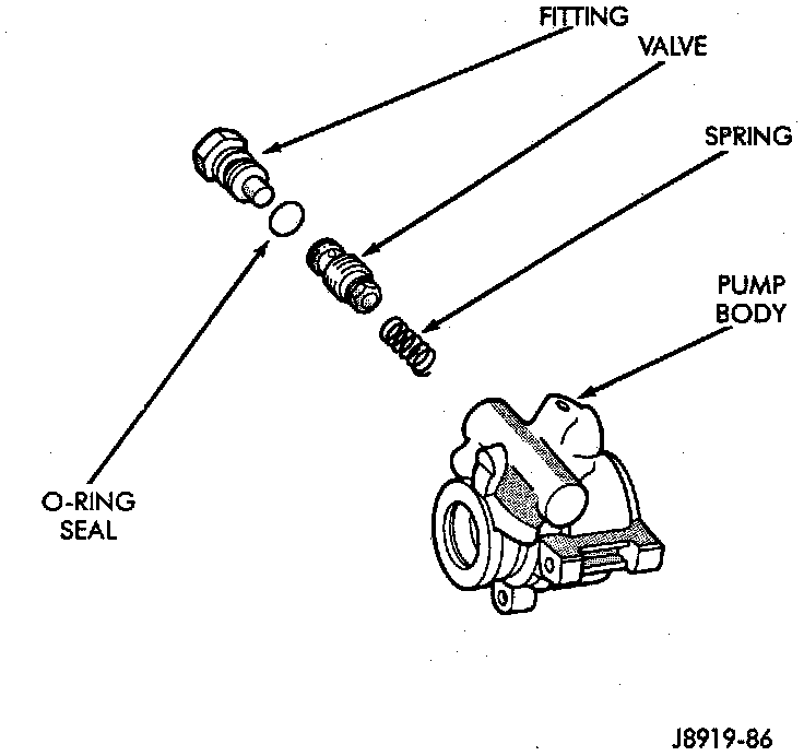 2. Remove fitting from pump housing. Prevent flow control valve and spring from sliding out of housing bore.
