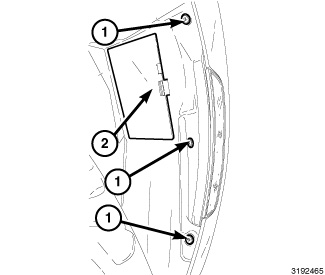 3. Remove the two fasteners (1) securing the cladding to the splash shield.