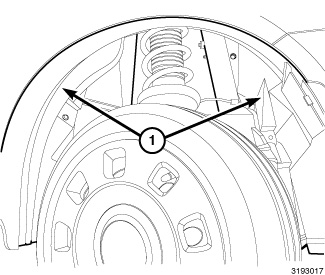 2. Remove the splash shield to fascia fasteners (1).