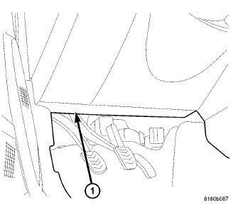 3. Connect a scan tool to the Data Link Connector located under the instrument panel to the left of the steering column (1). If the scan tool does not power-up, check the power and ground supplies to the connector.