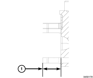 5. Measure the protrusion length (1) of the installed exhaust stud. The length must be between 24 - 26 mm (0.945 - 1.023 in.) when fully seated.