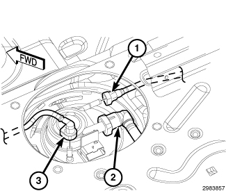 5. Connect the return (1), fuel supply (2), and vapor (3) lines to the fuel pump module Service and Repair.