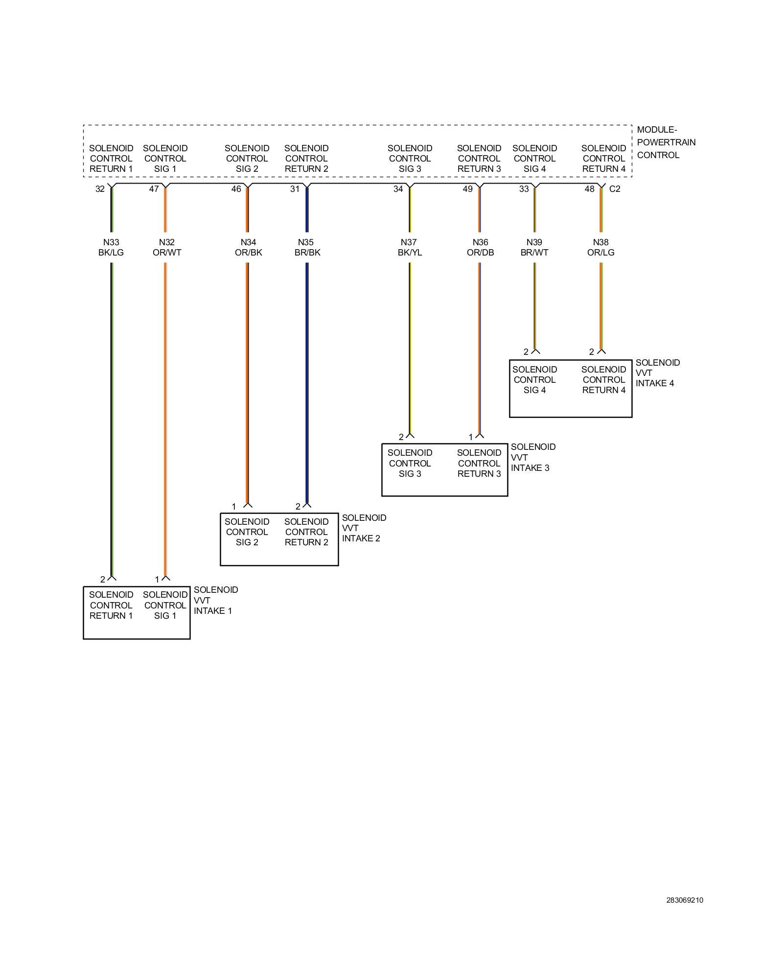 1. Using the wiring diagram/schematic as a guide, inspect the wiring and connectors between the Solenoid and the Powertrain Control Module (PCM).