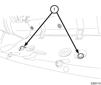 3. Remove the fasteners (1) securing the storage bin to the seat frame.