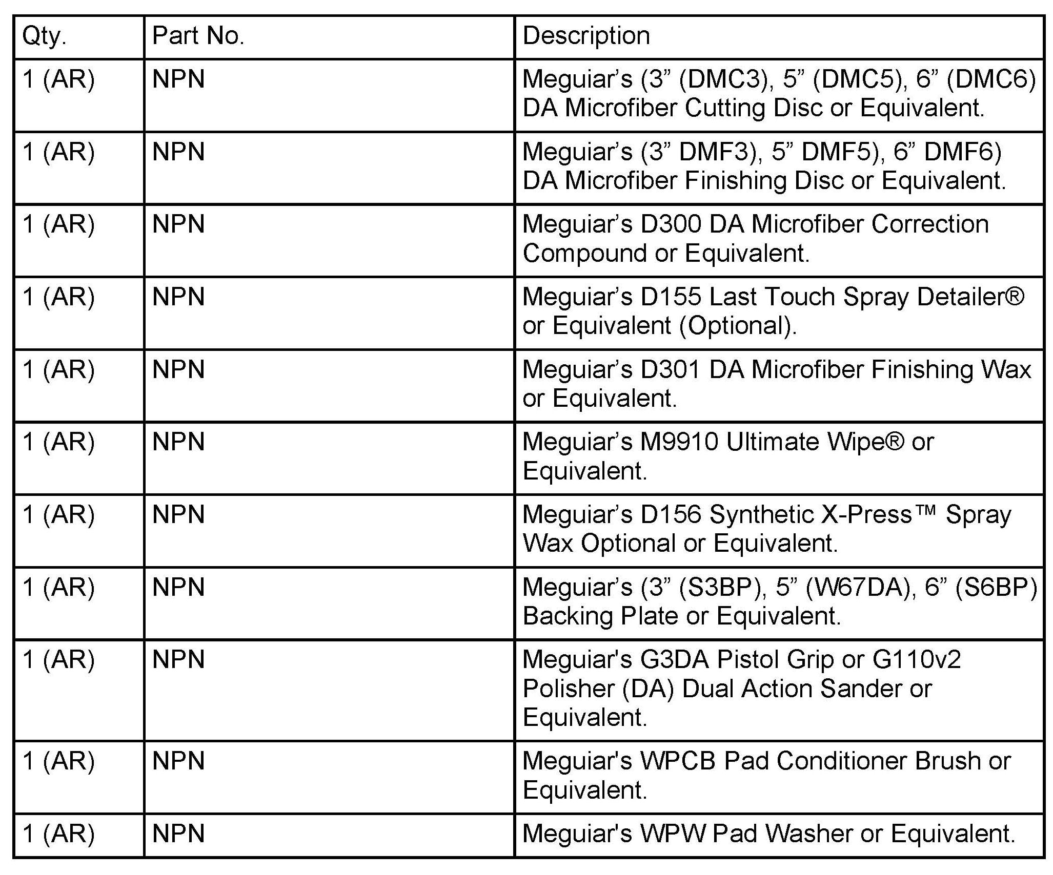 4. Apply DA Microfiber Finishing Wax D301 or equivalent directly to DA Microfiber Finishing Disc applying 2-3 light pressure passes to entire repair area and wipe residue off using Meguiars Ultimate Wipe Detailing Cloth M9910 or equivalent.