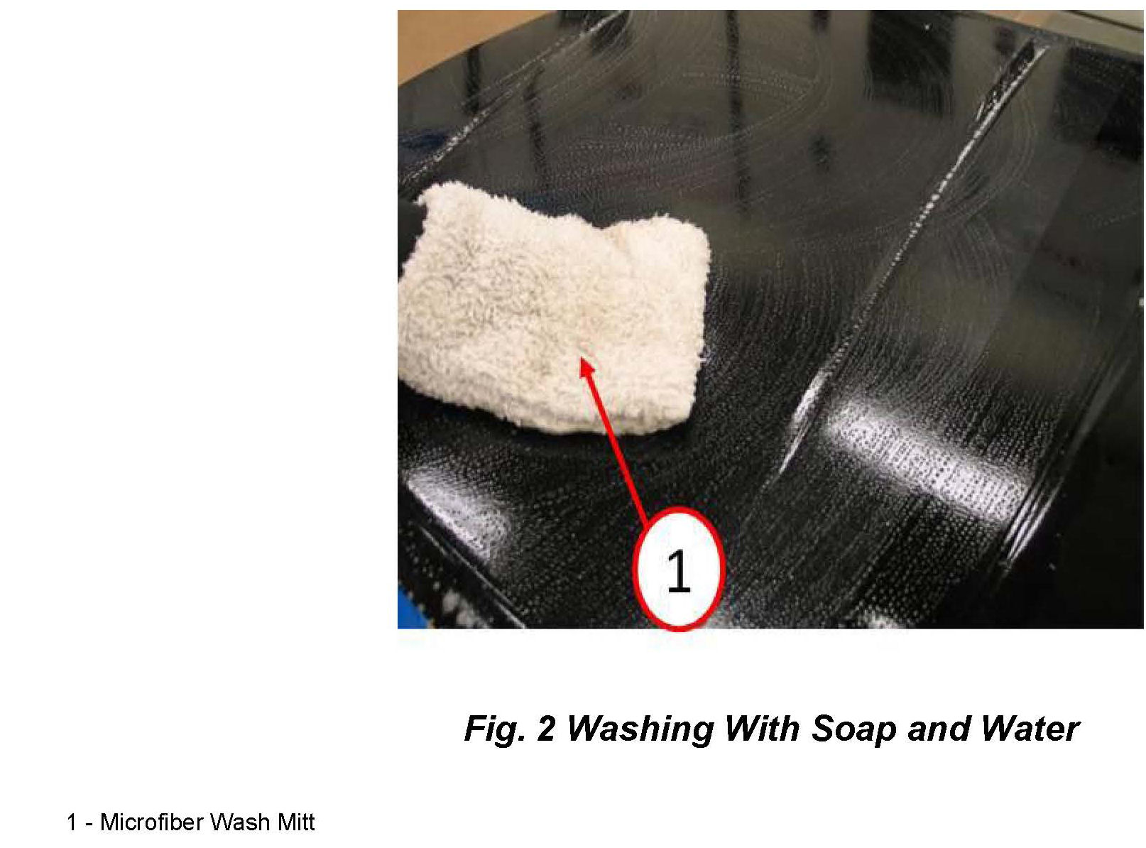 1. Before removing any overspray, wash the effected area with soap and water as shown in (Fig. 2).