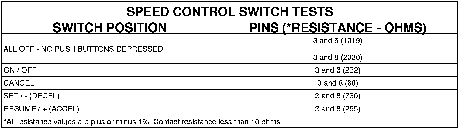 3. Using an ohmmeter, test the resistance between the terminals of the switch as shown in the Speed Control Switch Tests table.