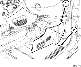 4. Position the passenger side console closeout cover (1) and engage the front retaining tab.