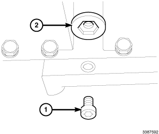 13. Install and tighten plug (1) to 8 Nm (71in. lbs.), tighten plug (2) to 51 Nm (38 ft. lbs.)