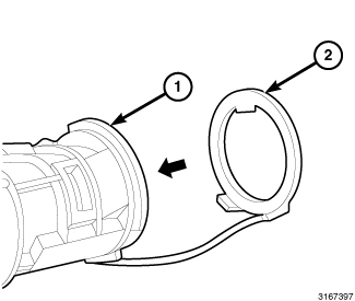 6. Remove security ring (2). The ring will hang in the vehicle.