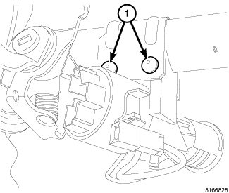 10. Using the slots created in the previous step, remove the retaining bolts (1) from the lock housing, then remove the lock housing from the column.
