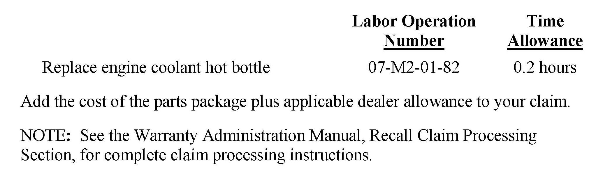 Campaign - Engine Coolant Hot Bottle Replacement: Overview