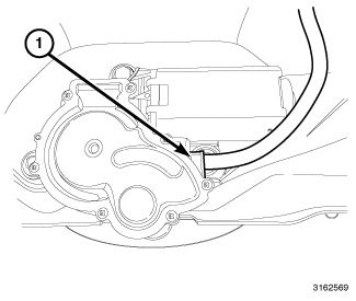 4. Disconnect the body wire harness connector (1) from the rear wiper motor connector receptacle.