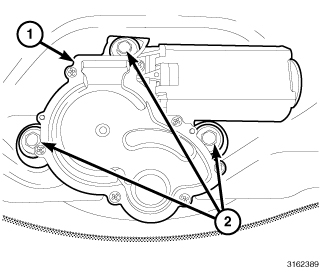 NOTE: Always use a new rubber grommet in the liftgate glass when installing the rear wiper motor.