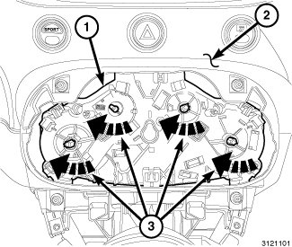 30. Install the three screws (1) securing the cluster bezel (2).