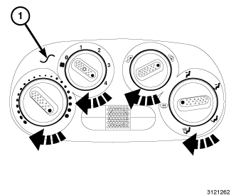 36. If required, lightly lubricate the control shafts to housing contact points on the front of the A/C heater control (1) using Silicone Grease, available through Mopar.