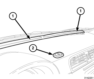 11. With the help of an assistant, position the instrument panel cover (1) into the vehicle and connect the two PAB squib connectors.