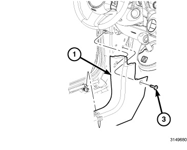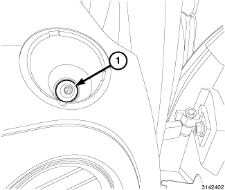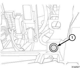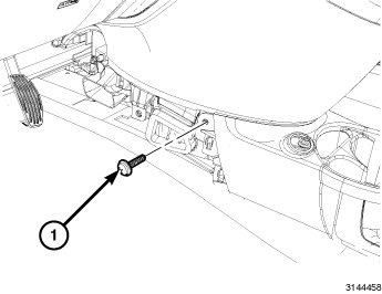 13. Install the fence bolt (1) located on the lower right area of the instrument panel. Tighten the bolt securely.