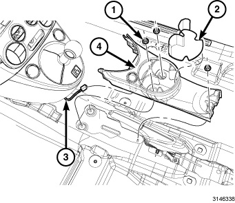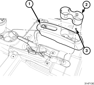 61. Install the rear retaining nut (3) located in the rear cupholder cavity. Tighten the nut securely.