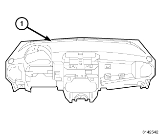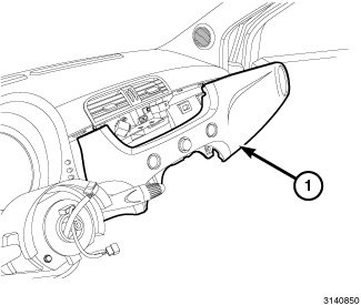 43. Position and align the left side vent/trim panel (1) to the instrument panel. Once aligned, hand tap to engage the retaining clips.