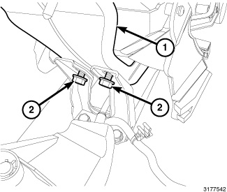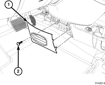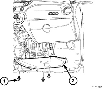 21. Install the bolt (2) located in the glove box cavity. Tighten the bolt securely.
