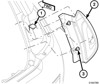 6. Install and tighten the two screws (3) that secure the rear lamp unit to the side trough of the liftgate opening. Tighten the bolts to 27 Nm (20 ft. lbs.).