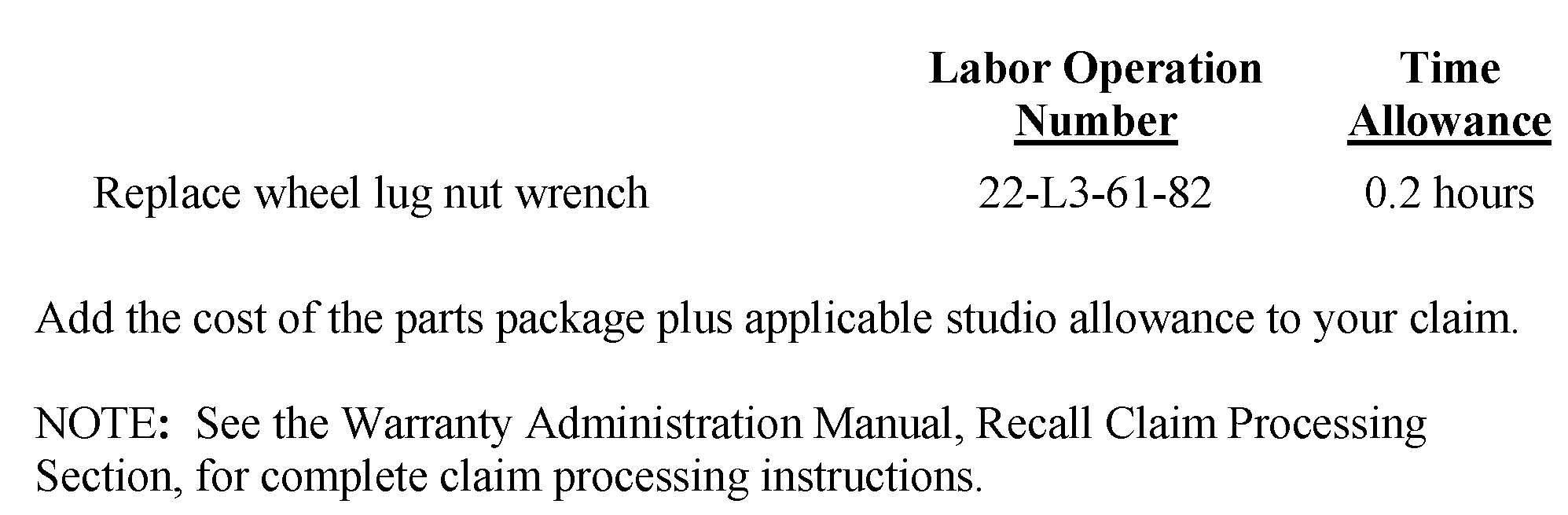 Use the labor operation number and time allowance shown.