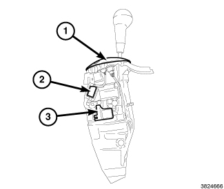 3. Depress the BTSI override (3) on the side of the shifter assembly (1).