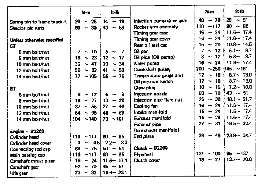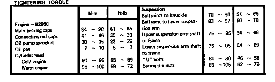 2.0L SOHC Engine Torque Cont.: