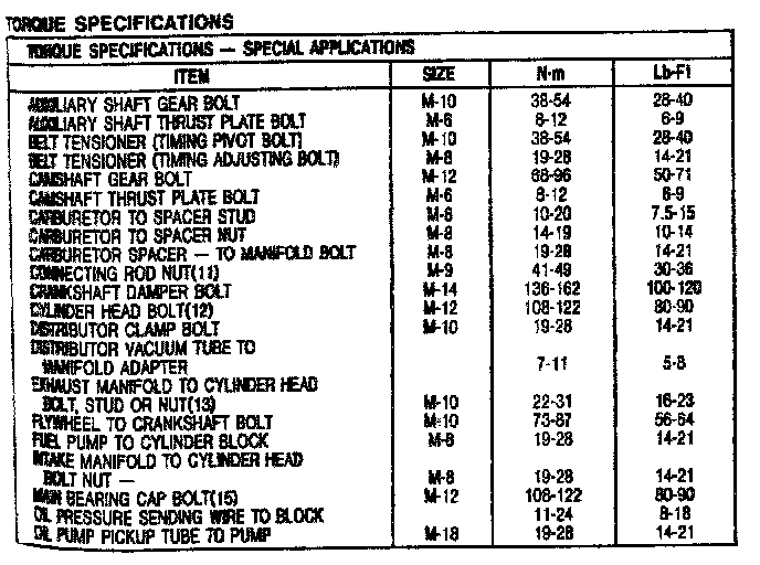 2.3L SOHC Engine Mechanical Torque: