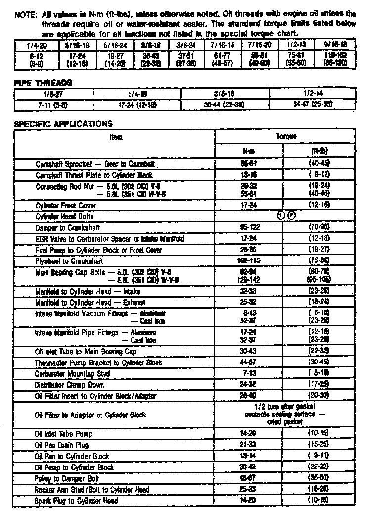 5.0L/5.8L V8 Engine Torque Cont.: