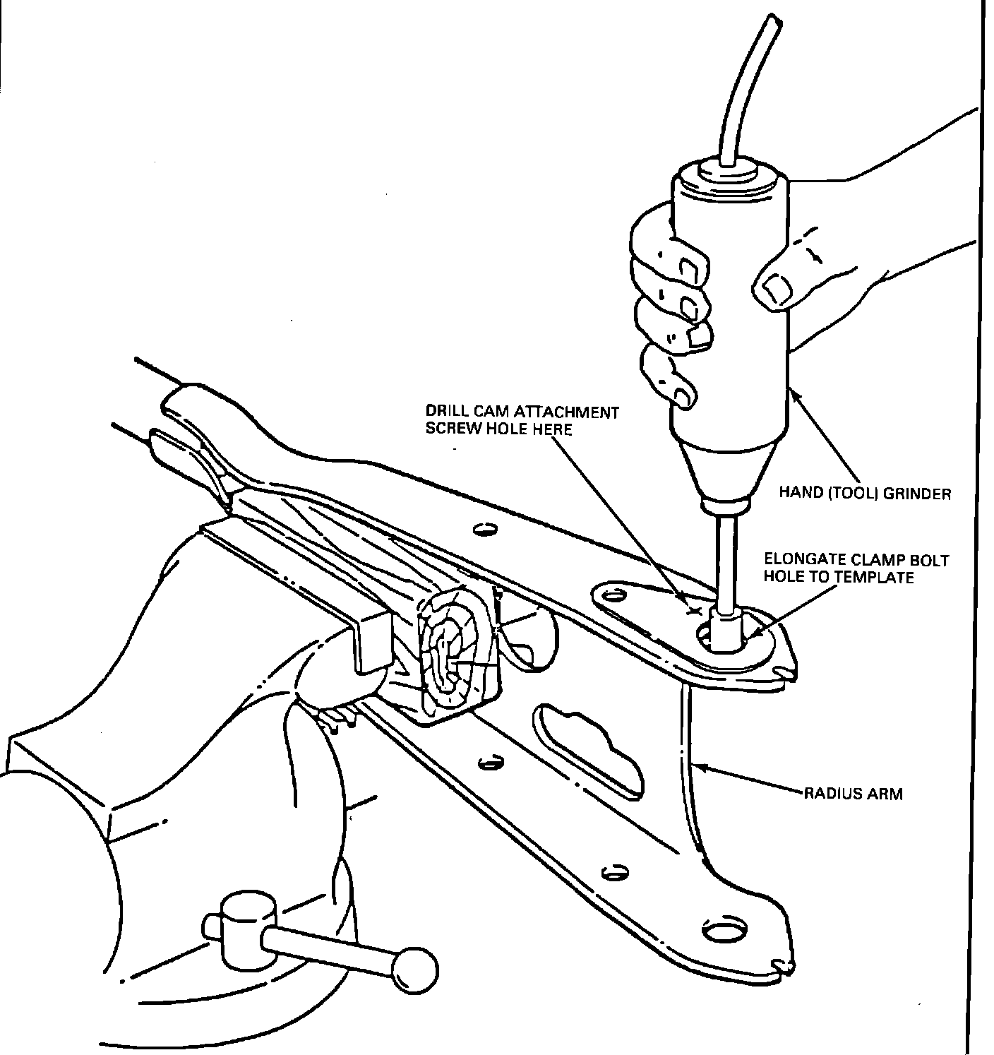 Figure 9 - HOLE DRILLING INSTRUCTIONS - CAM ATTACHMENT TO LOWER FLANGE RADIUS ARM: