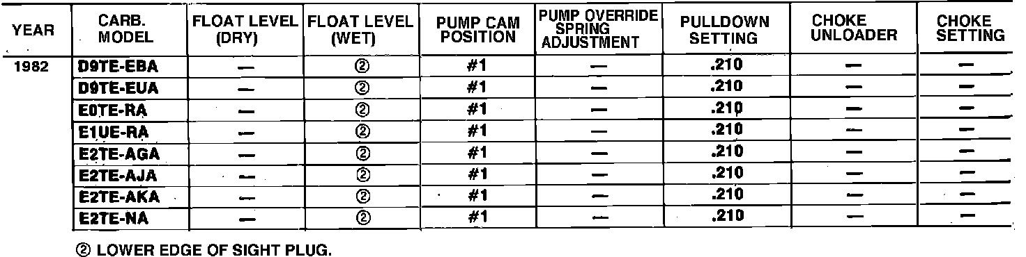 1982 4180-C 4V ADJUSTMENT SPECIFICATIONS: