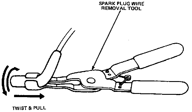 - Remove the wire from each spark plug by grasping the molded boot with tool T74P-6666-A or equivalent. Twist the boot until it loosens and then pull it off the spark plug. Do not pull on the wire, as the connection may become damaged.