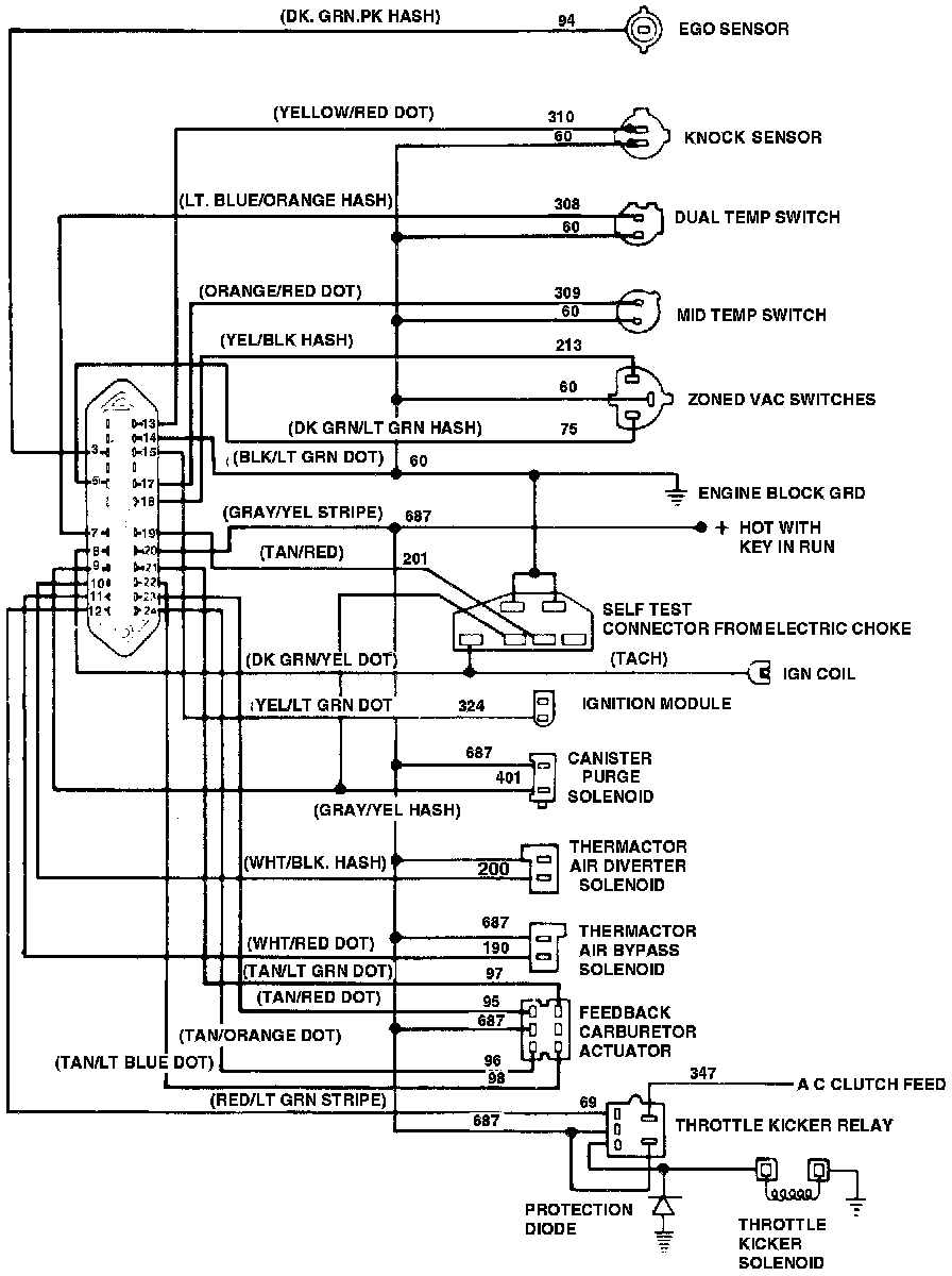 3. Connect one lead of an ohmmeter to engine block ground, then with other lead of ohmmeter, probe circuits 95, 96, 97, and 98 of the harness connector, Fig. 8 checking for a short to ground. If resistance is 1000 ohms or more, proceed to test 8. If resistance is less than 1000 ohms, repair affected circuit(s).