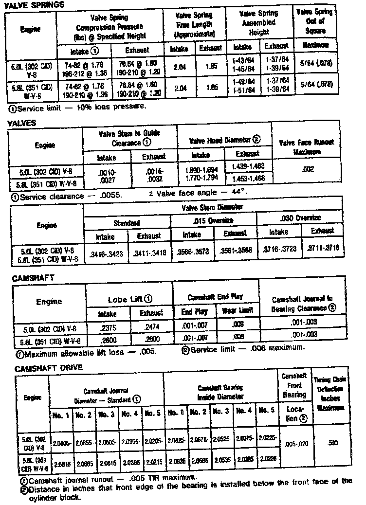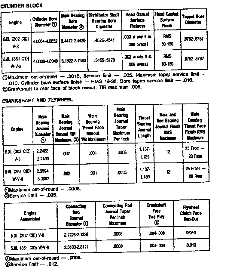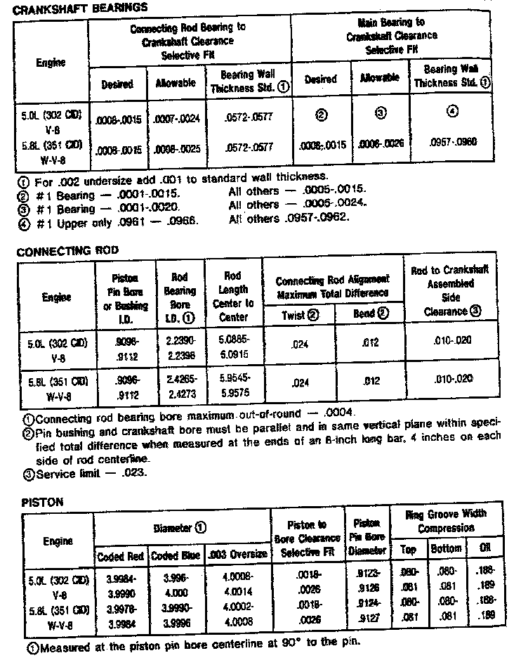 5.0L/5.8L V8 Engine Mechanical Cont.:
