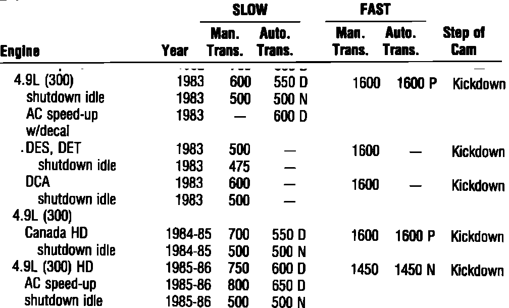 IDLE SPEED SPECIFICATIONS: