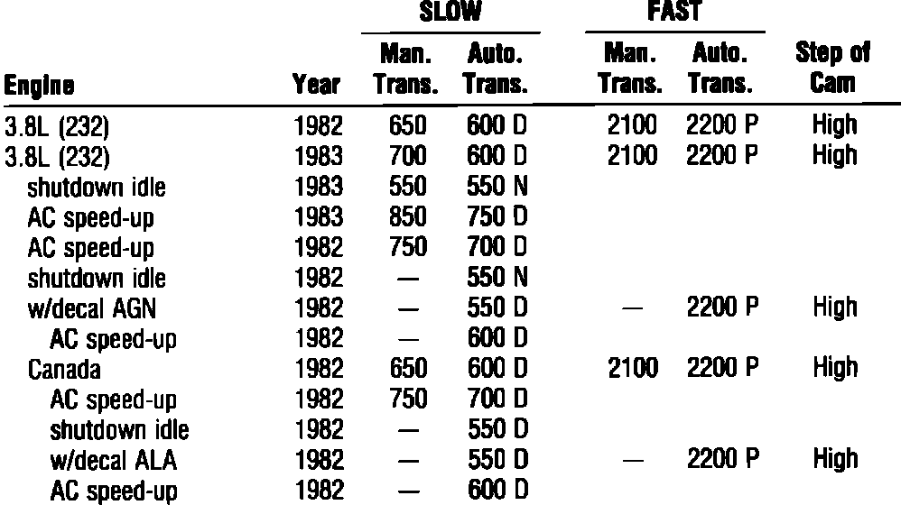 IDLE SPEED SPECIFICATIONS:
