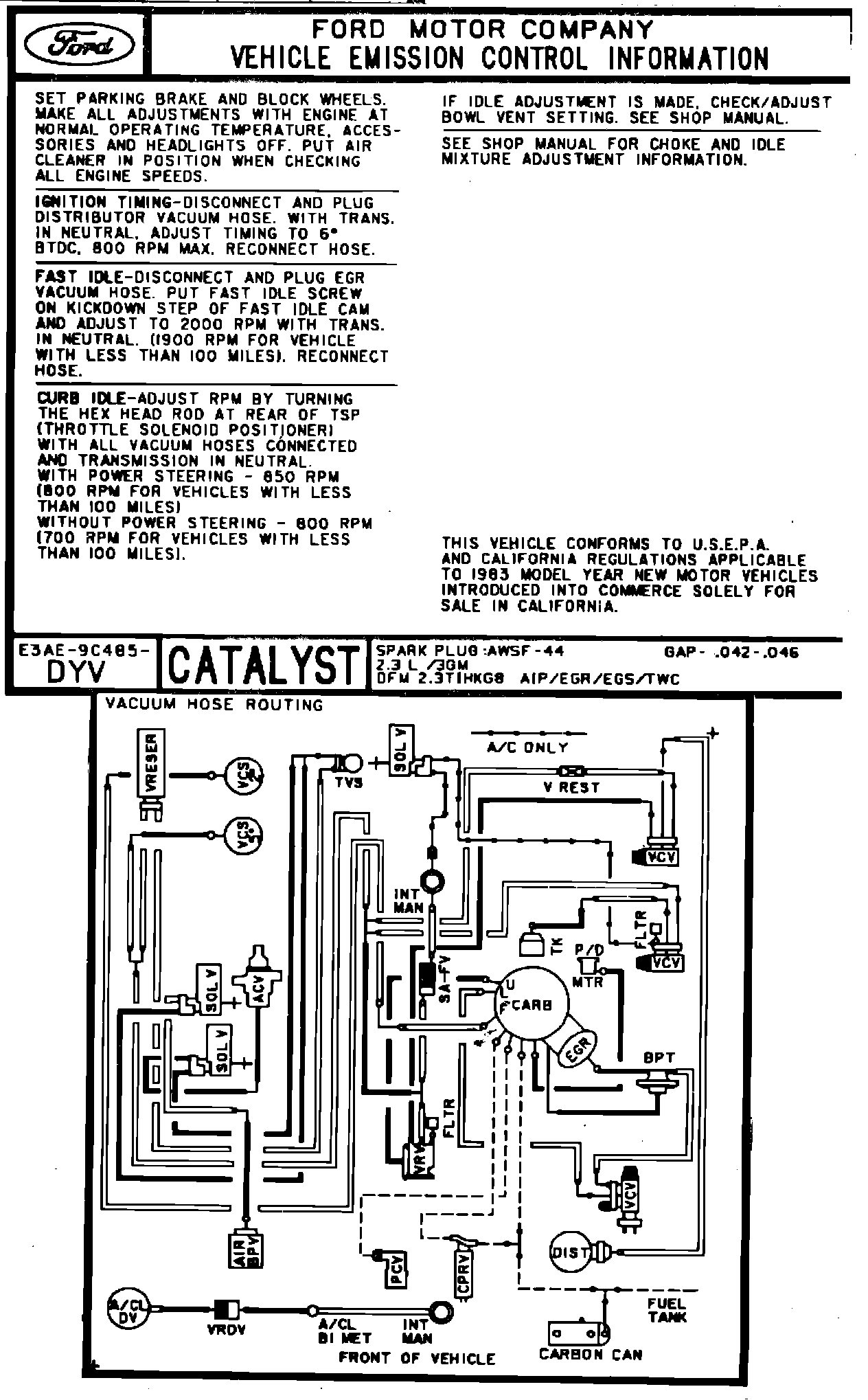 MODEL YEAR: 1983 - ENGINE: 2.3L