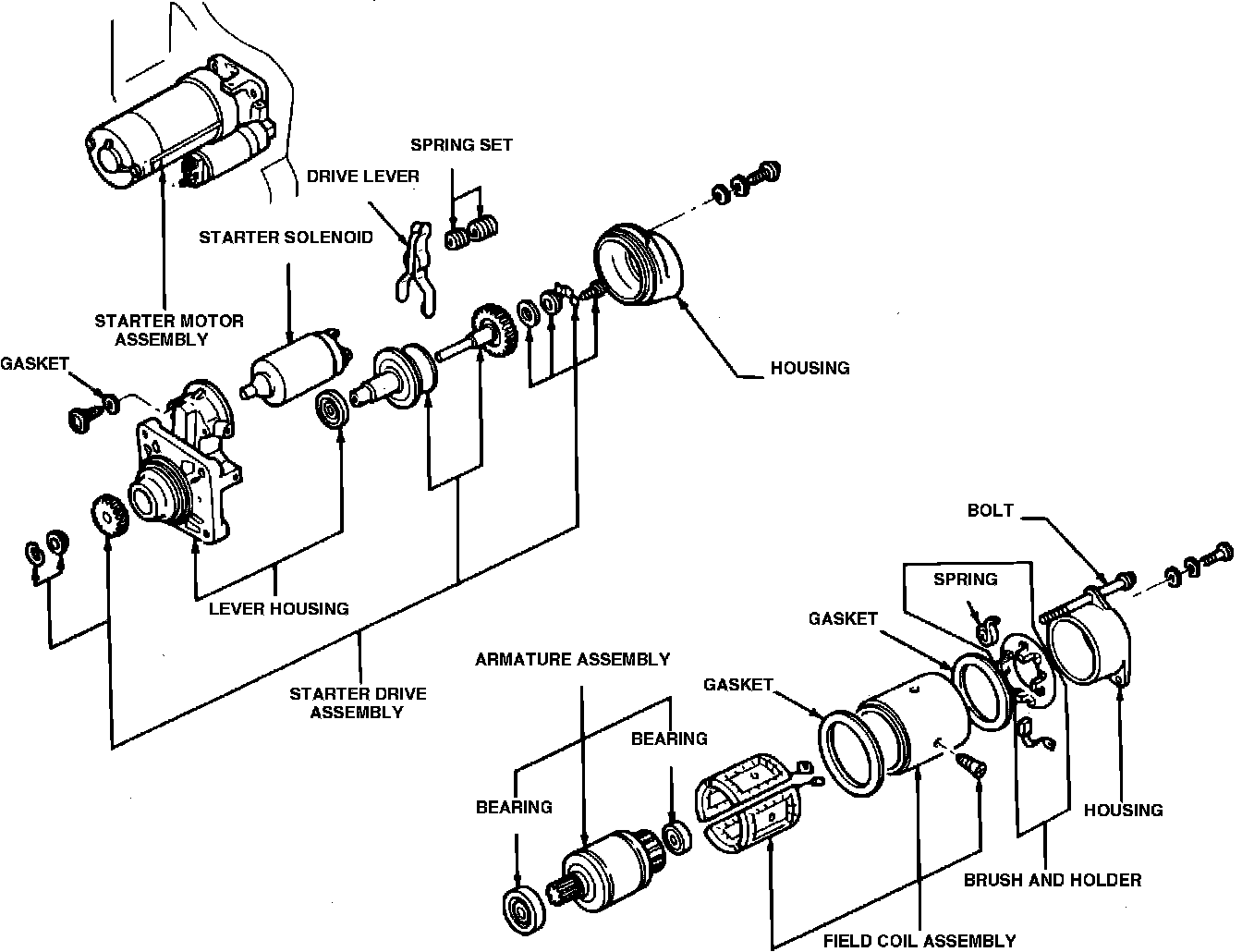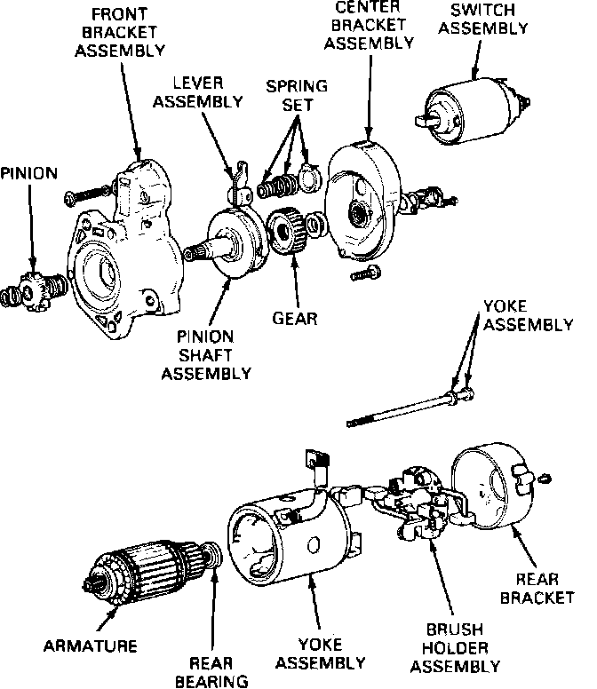 Fig. 2 Exploded view of Mitsubishi starter. 4-143/2.3L engine: