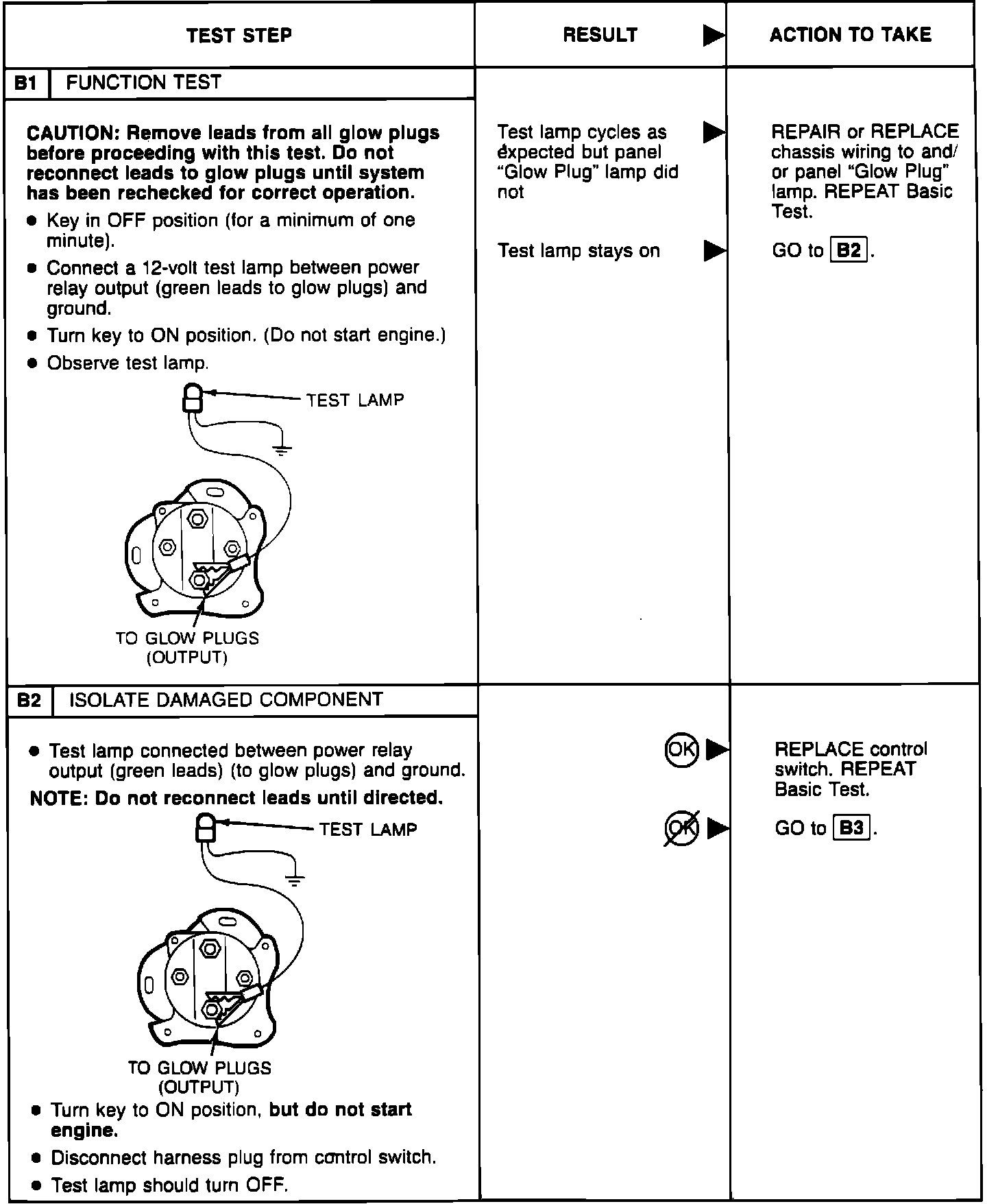 Glow Plug Lamp Basic Test: