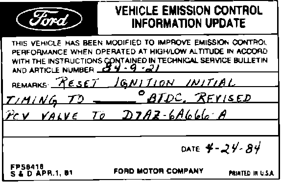 Obtain a Vehicle Emission Control Information Update Label (available at all Ford or Lincoln-Mercury dealers)