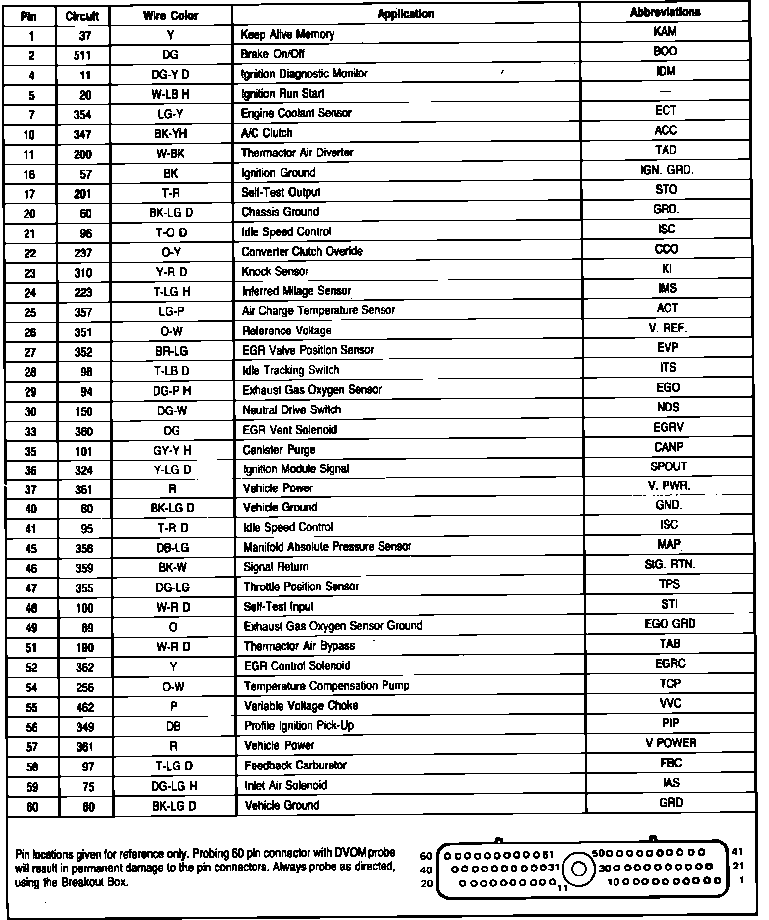 Fig. 126 EEC-IV connector terminal identification. 1985 V6-171: